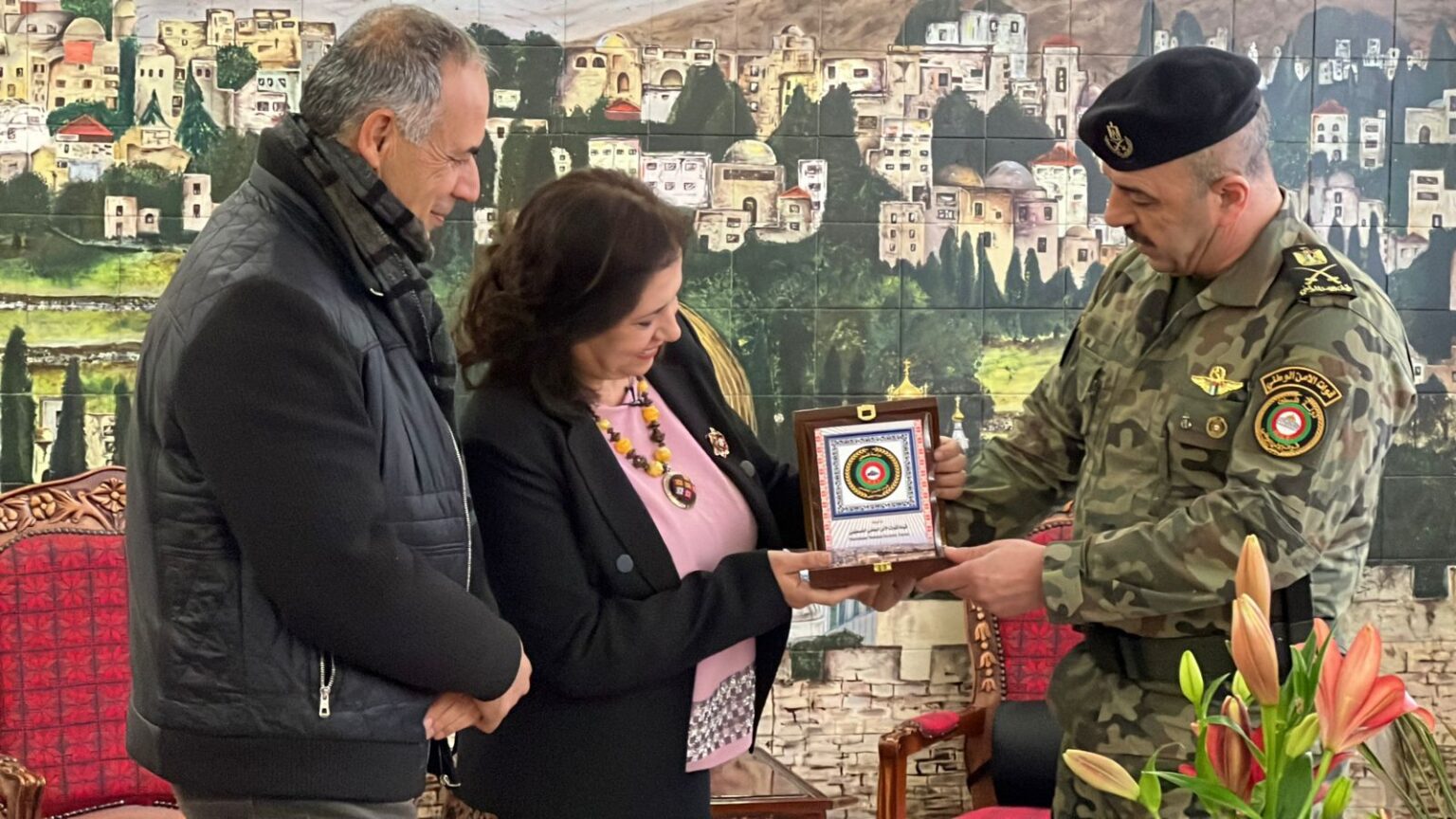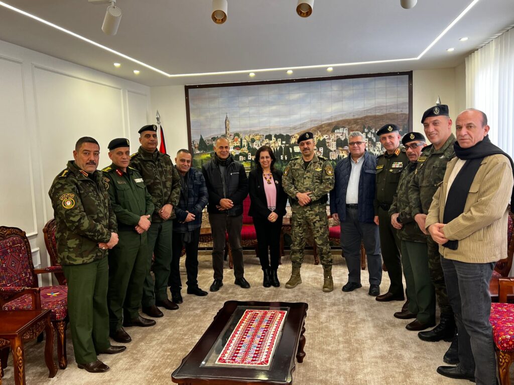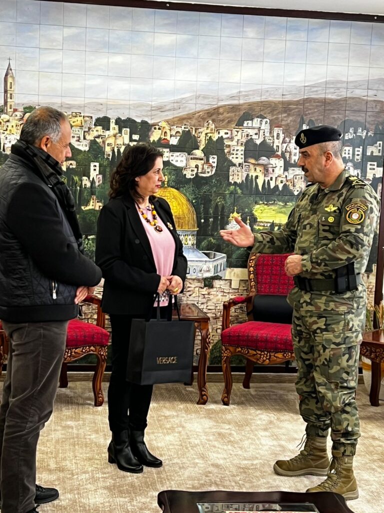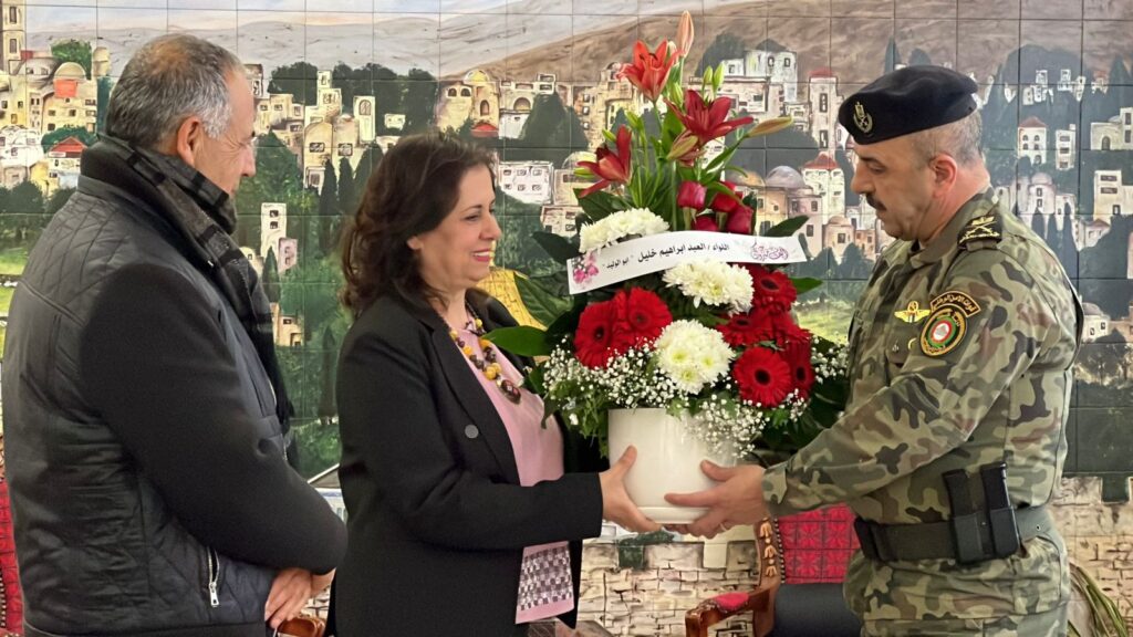 رام الله- معا- كرم قائد قوات الأمن الوطني اللواء بحري العبد إبراهيم خليل، مؤسسة فلسطين الخير ممثلة بمدير عام المؤسسة السيدة رولا سلامة، ورئيس مجلس إدارة المؤسسة اللواء المهندس المتقاعد سعادة القاضي، و أعضاء مجلس إدارتها محمد نجيب ومنذر براهمة ، بالإضافة لطاقم المؤسسة، تقديراً لجهودهم الإنسانية المبذولة في كافة محافظات الوطن، وذلك في قيادة قوات الأمن الوطني بمحافظة رام الله.